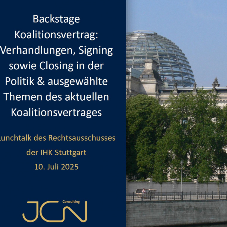 Es war mir eine große Freude, vergangene Woche mit Inhouse-Kolleginnen und Kollegen aus Unternehmen der Region Stuttgart einen etwas anderen Blick auf den Koalitionsvertrag zu werfen. Uns war allen bewusst, dass dieser schon einige Wochen alt ist. Es gab schon…