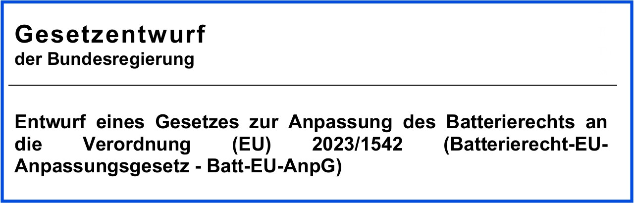 Lang erwartet – eigentlich schon von der alten Bundesregierung. Nun ist er da: der Gesetzentwurf zur „Anpassung des Batterierechts an die Verordnung (EU) 2023/1542“ – kurz: Batterierecht-EU-Anpassungsgesetz – und noch kürzer: Batt-EU-AnpG. Zwar ist die Verordnung (EU) 2023/1542 (…) über…